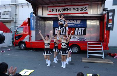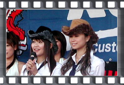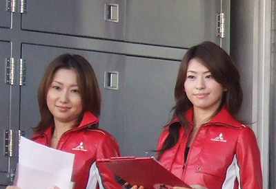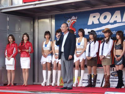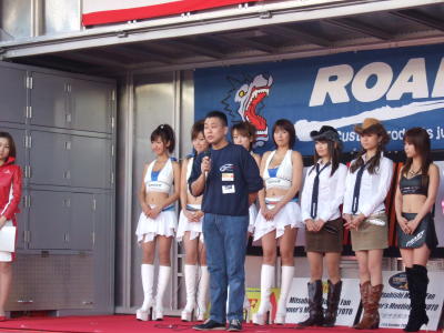 | MINT’Sのお2人の他に、イベントに華を添える9人のイベントガールにお手伝い頂きました。 ROARガールからは、ひろぽん、たかちん、えみりん、美穂Gyuuの4人、、東洋ゴムからはの梶本さん、 野末さんのお二人、フィーストから春山さん、ハセプロから睦姫さん、エーピーブレーキサービスからは 藍沢さんです。 |