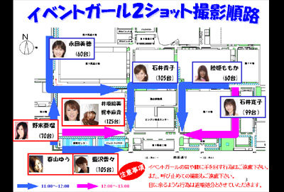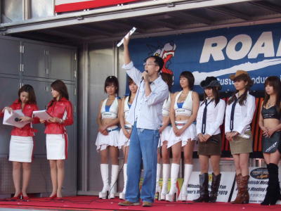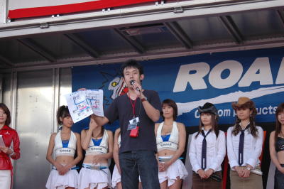 【上段左】COOLの加川さん 当日のスケジュール全般を説明頂きました。 【上段右】Z1516CLUBの井上さん じゃんけん大会の企画・運営を頂きました。 【中段左】MOCJの田中さん クイズラリーの企画・運営を頂きました。 【下段左】Minicab Mates Clubのよこよこさん メーカーとユーザーの意見交換掲示板の企画・ 運営を頂きました。 【下段右】MOFの柿本さん お楽しみ抽選会の企画・運営を頂きました。 |