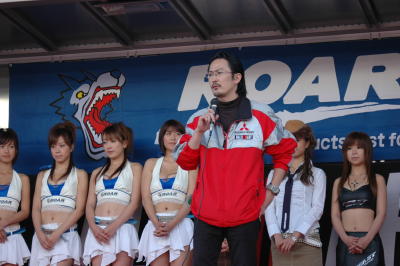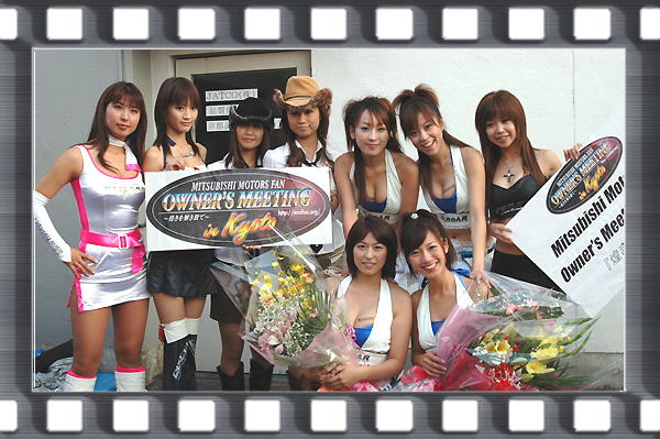 【上段左】 ラリーアート 小湊様 新型パジェロによるパリダカ体感試乗についてご説明 頂きました。 【中段左】 三菱自動車 五十嵐様 当日の配布物の中に下記のチラシが一枚同梱されて いました。そう、まだ未発表の新型車『デリカD:5』の MMF京都参加者限定の内覧会です。 【下段右】 CLUB−i 梅村さん キャンペーンガールと記念撮影の取りまとめを頂きました。 |