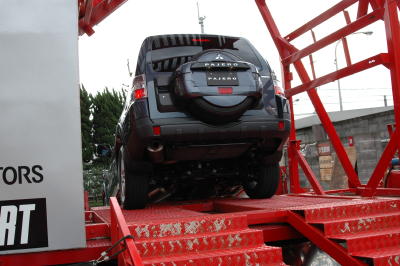 | パリダカ体感に使用する車輌は2006年10月に フルモデルチェンジされた新型パジェロです。 ボディはフロントミッドシップの4WDレイアウト。 ラダーフレームビルトイン モノコックボディです。 エンジンはMIVECの3.8LのV6 24バルブ、 最大トルクは2750回転で発生し高回転域まで 伸びのあるエンジンです。 どの回転域でも意のままに操る事が出来、 街のり 高速道路、起伏や衝撃の激しいオフロード・・・ どんな道路状況にも対応するトータルバランスに 優れた車に仕上がっています。 |