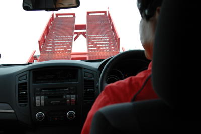 【上段左】 デコボコ道の後は最大傾斜が45度の坂昇りです。 【最下段左】 ミサイルの発射台ではありません^^ この位置からは当たり前ですが、フロントウインドウから は空しか見えません。スキーの急斜面において45度は まっさかさまのイメージです。ゆっくりですが下るのは 落ちるに近い感触だったのでは・・・ 車内の動画もあります。こちらをクリック!! (容量が大きくダウンロードに時間がかかります) 【最下段右】 運転のプロドライバー小暮選手の横顔です。 ありがとうございました! |